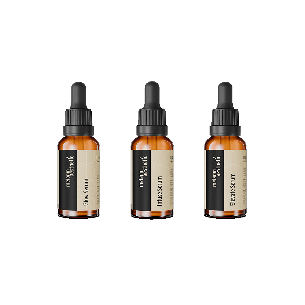 - Elevate Serum : Breng 2-3 druppels Elevate Serum aan op jouw gezicht en hals en masseer het zachtjes in. Dit serum verstevigt jouw huid en verzacht fijne lijntjes.